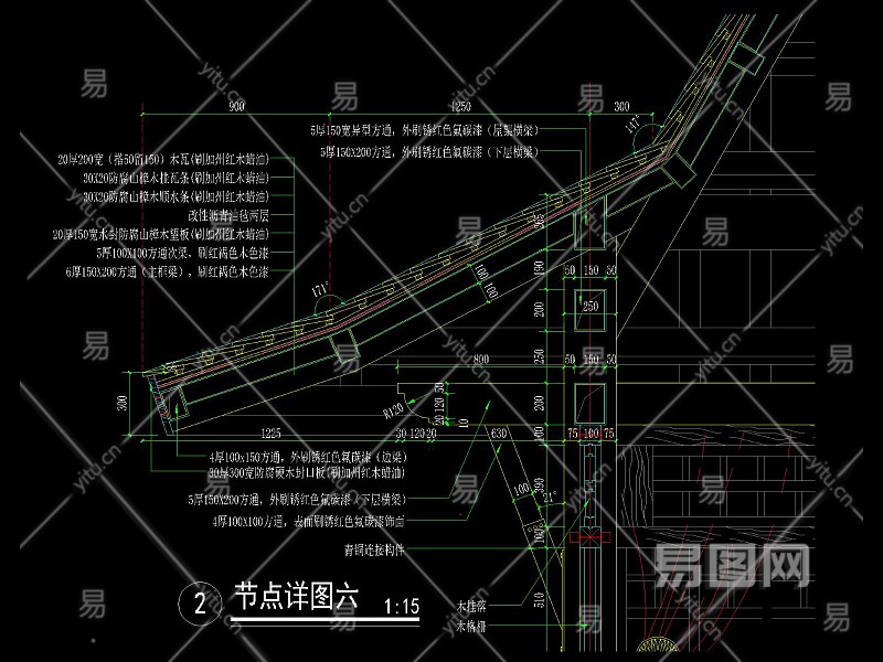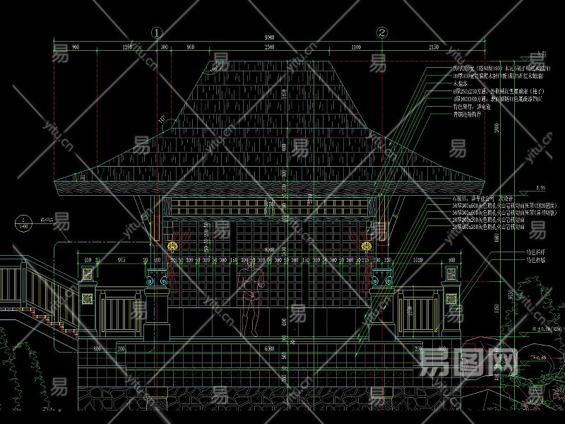 新中式梭形顶四角木亭详图