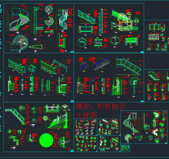 旋转楼梯栏杆踏步节点大样图,旋转楼梯栏杆踏步节点CAD施工图纸下载