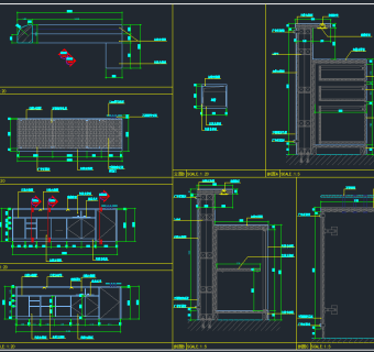 书柜平面立面剖面图详图CAD图库,软装CAD施工图纸下载