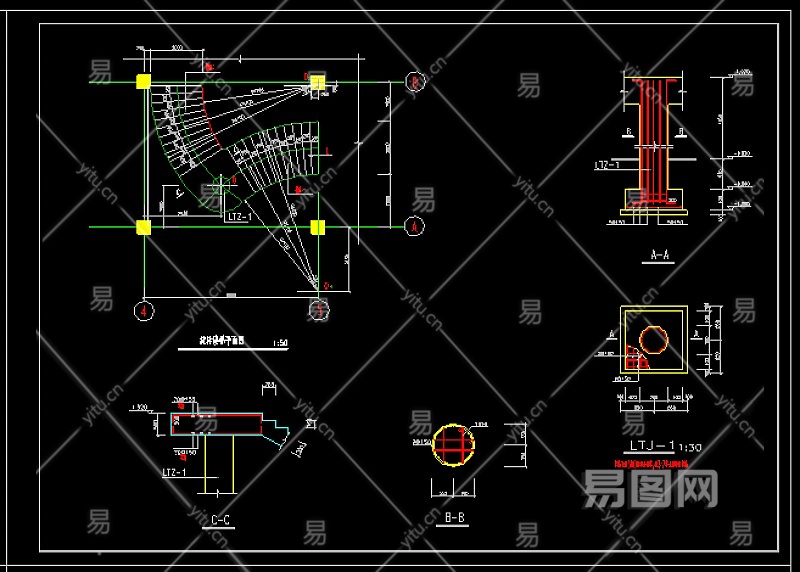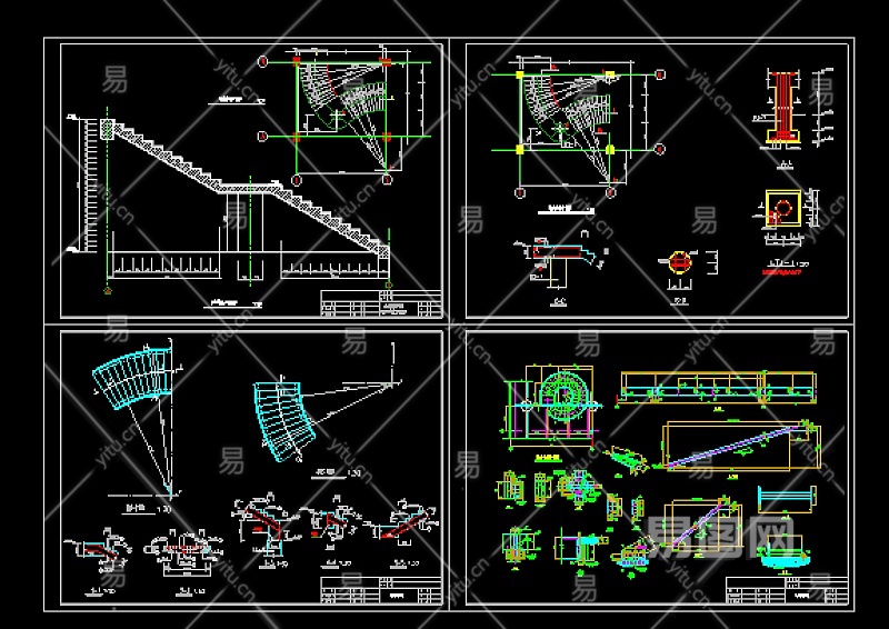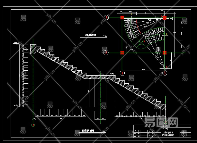 实用旋转楼梯全套cad平立面设计详细图纸