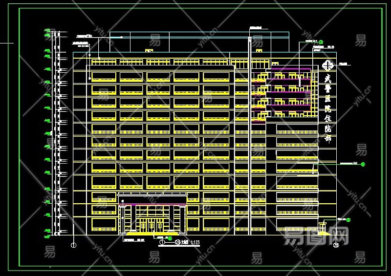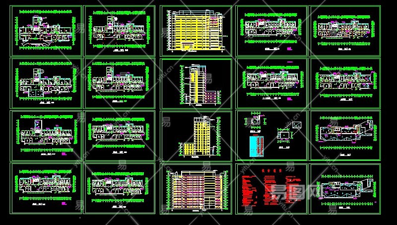 乐山某武警医院十三层住院楼设计cad建筑方案扩初图