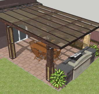 现代玻璃廊架草图大师模型,玻璃廊架sketchup模型