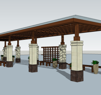 现代青砖廊架草图大师模型,青砖廊架sketchup模型下载