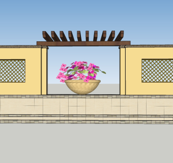中式围墙院墙草图大师模型skp文件,围墙sketchup模型skp文件下载