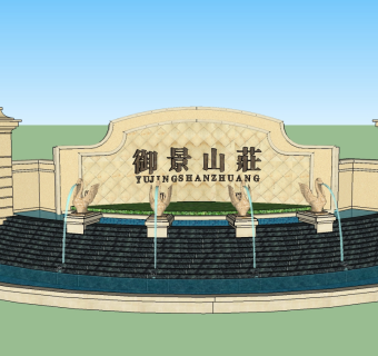 中式御景山庄景墙草图大师模型,景墙sketchup模型skp文件分享