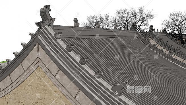 这是屋脊兽蚩尾su模型,鸱尾最早的名称应该是蚩尾。后来,大概是到中唐之际,鸱尾又叫做了鸱吻。这一名称的改变是其造型改变引起的。由原来鸱尾前端与正脊齐平变为折而向上似张口吞脊,因称鸱吻。有个有意思的现象,江南一些地区管这类吻兽叫做鳌鱼。明代陆容写的《菽园杂记》中有载:"鳌鱼,其形似龙好吞火,故立于屋脊上。屋脊兽蚩尾su模型下载_sketchup草图大师SKP模型