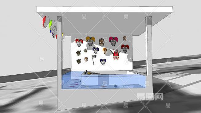 这是面具饰品店SU模型,面具是造型艺术的一个特殊领域,它最早出现于十分遥远的古代。许多部落和部落的面具常是把雕刻和绘画结合在一起,创造出颇为精彩的作品,尽管奇形怪状,毕竟不失为造型艺术的一项重要的成就。面具饰品店SU模型下载_sketchup草图大师SKP模型