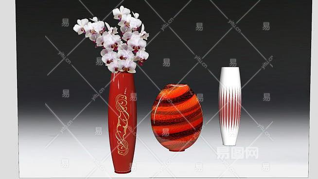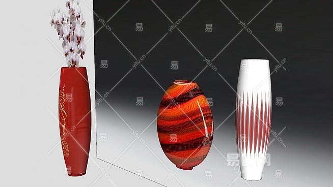 这是彩釉陶瓷花瓶SU模型,三种颜色的花瓶——红色和金色的图案,红色和黑色,白色和红色(兰花2d)。彩釉陶瓷花瓶SU模型下载_sketchup草图大师SKP模型