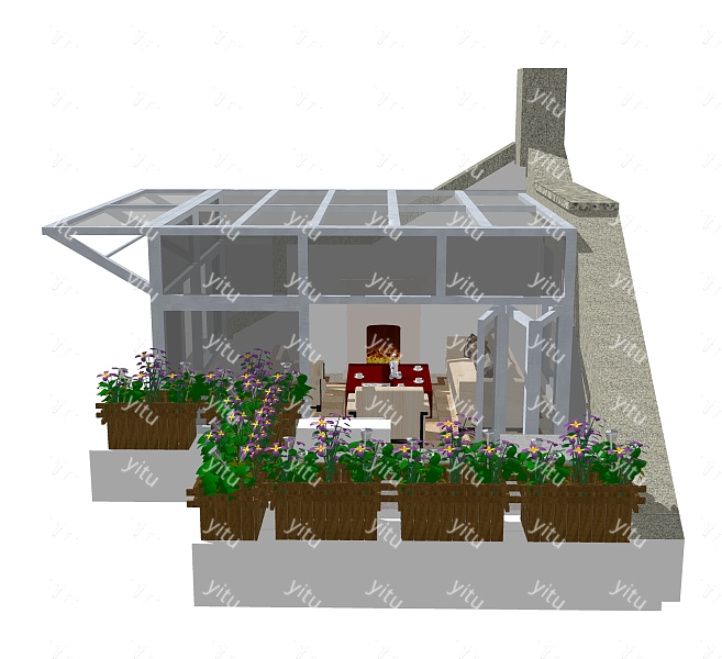 现代玻璃阳光房草图大师模型,阳光房SU模型。阳光房采用玻璃与金属框架搭建的全明非传统建筑,以达到享受阳光,亲近自然的目的。阳光房是国内外追求自然、时尚人士所推崇的建筑。室内布置可以根据个人喜好进行装饰。阳台或露台阳光房,处于整套居室内,因此视觉连性非常重要。需要考虑其与建筑整体风格要相符,同时整体色调尽量保持一致。易图网为您提供下载服务,好看实用。