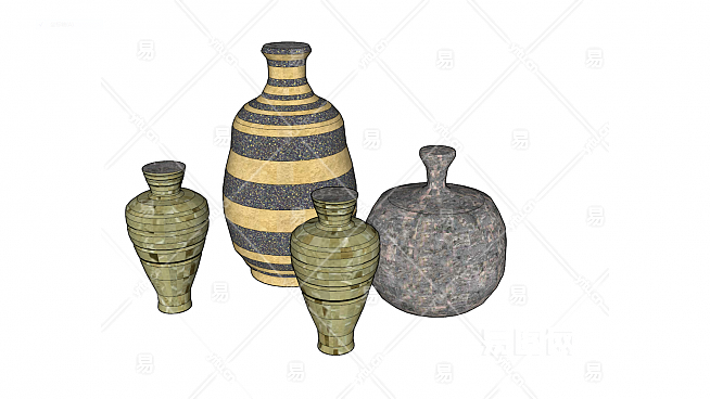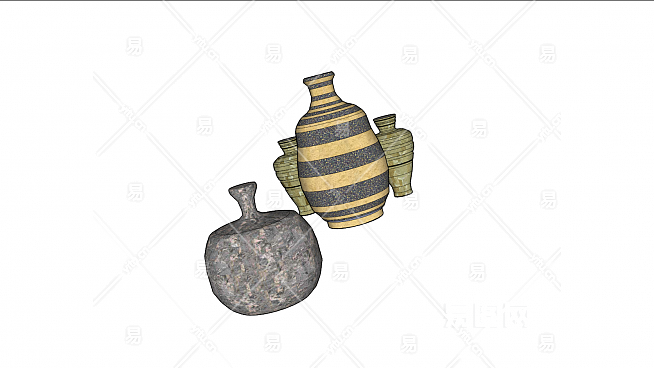 这是室内陶器花瓶摆件SU模型,陶与瓷不同,陶是用泥巴烧出来的。瓷是将瓷石打成粉末,搅拌成浆,倒入模具制作成的。同一温度烧出来的陶和瓷,瓷的硬度要强一些。室内陶器花瓶摆件SU模型下载_sketchup草图大师SKP模型